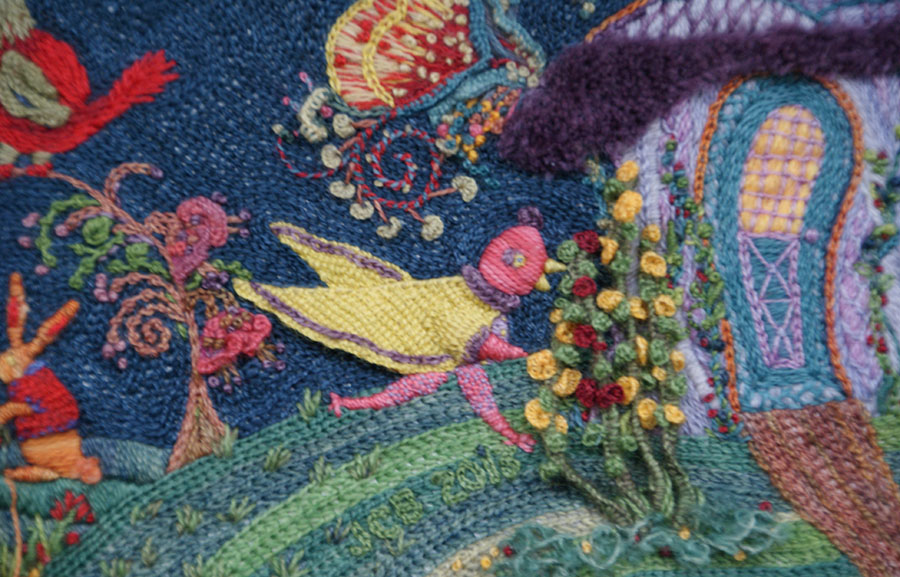 But now I am having a great time adding another layer of design to the embroidery. Here I have added a clump of